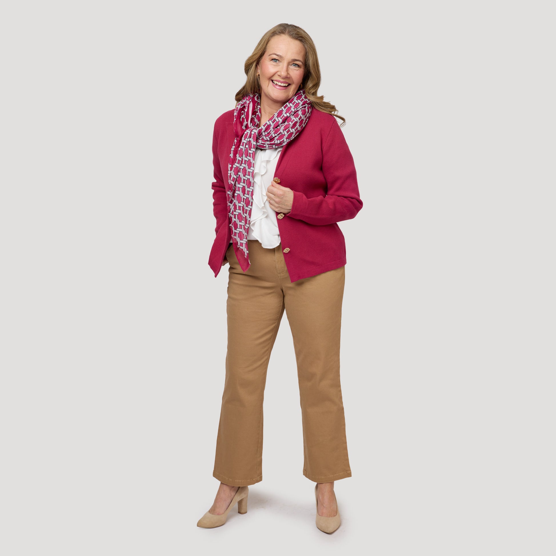 Stickad kavaj med matchande scarf